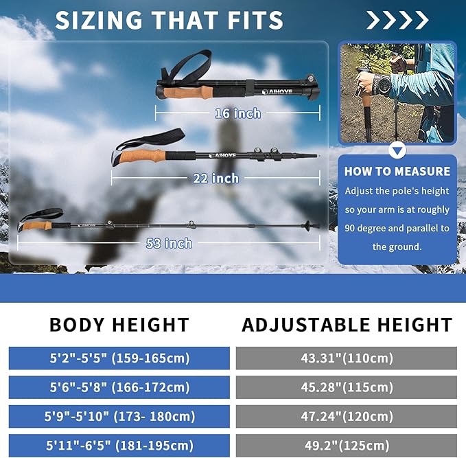 • Comfortable Cork Grips- Anti-Slip Cork Grips Provide Extra Comfort, It Resists Moisture From Sweaty Hands, Keep Hands Cool And Dry, Decreases Vibration With Each Step And Best Conforms To The Shape Of Your Hands. The Handle Has An Adjustable Padded Strap To Ensure A Better More Comfortable Grip. The Extended Foam Handles Is Convenient To Adjust Your Grip When The Terrain Changes