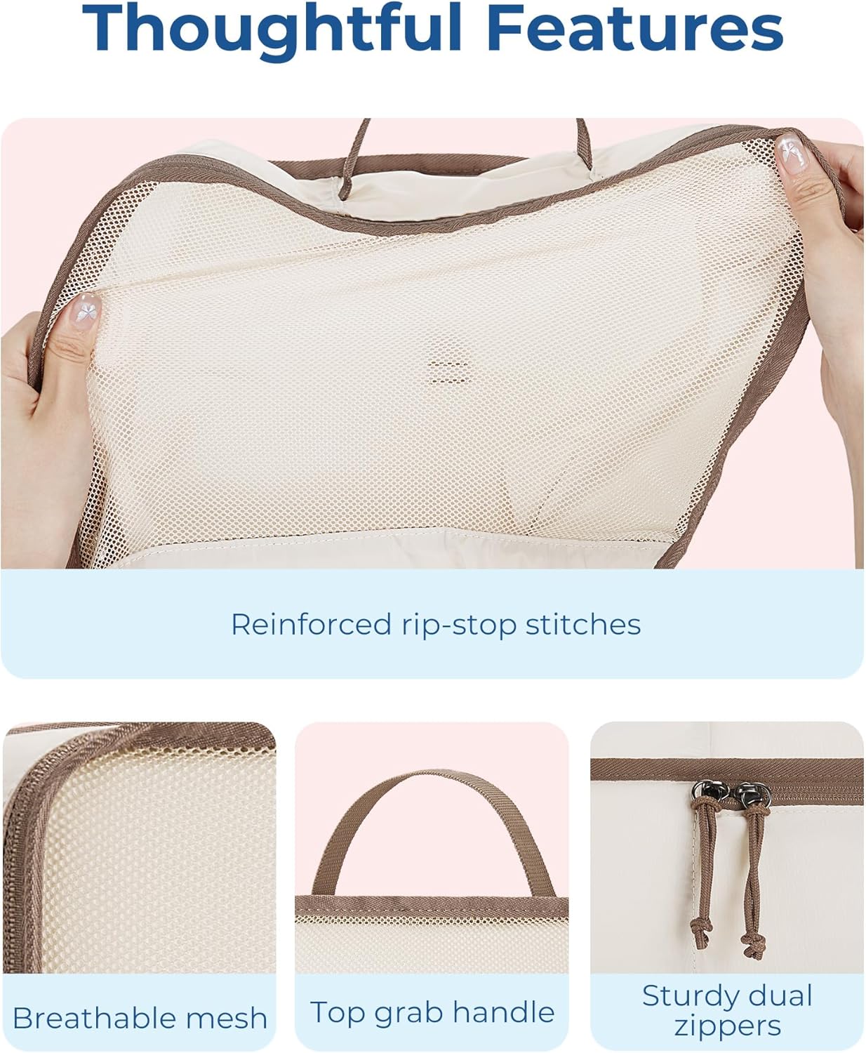 Equipped with sturdy zippers, convenient handles, and a hook for hanging, these packing cubes offer versatile storage options. Whether you’re using them in your suitcase or hanging them in your closet, these cubes will help you stay organized and maximize space wherever you go.